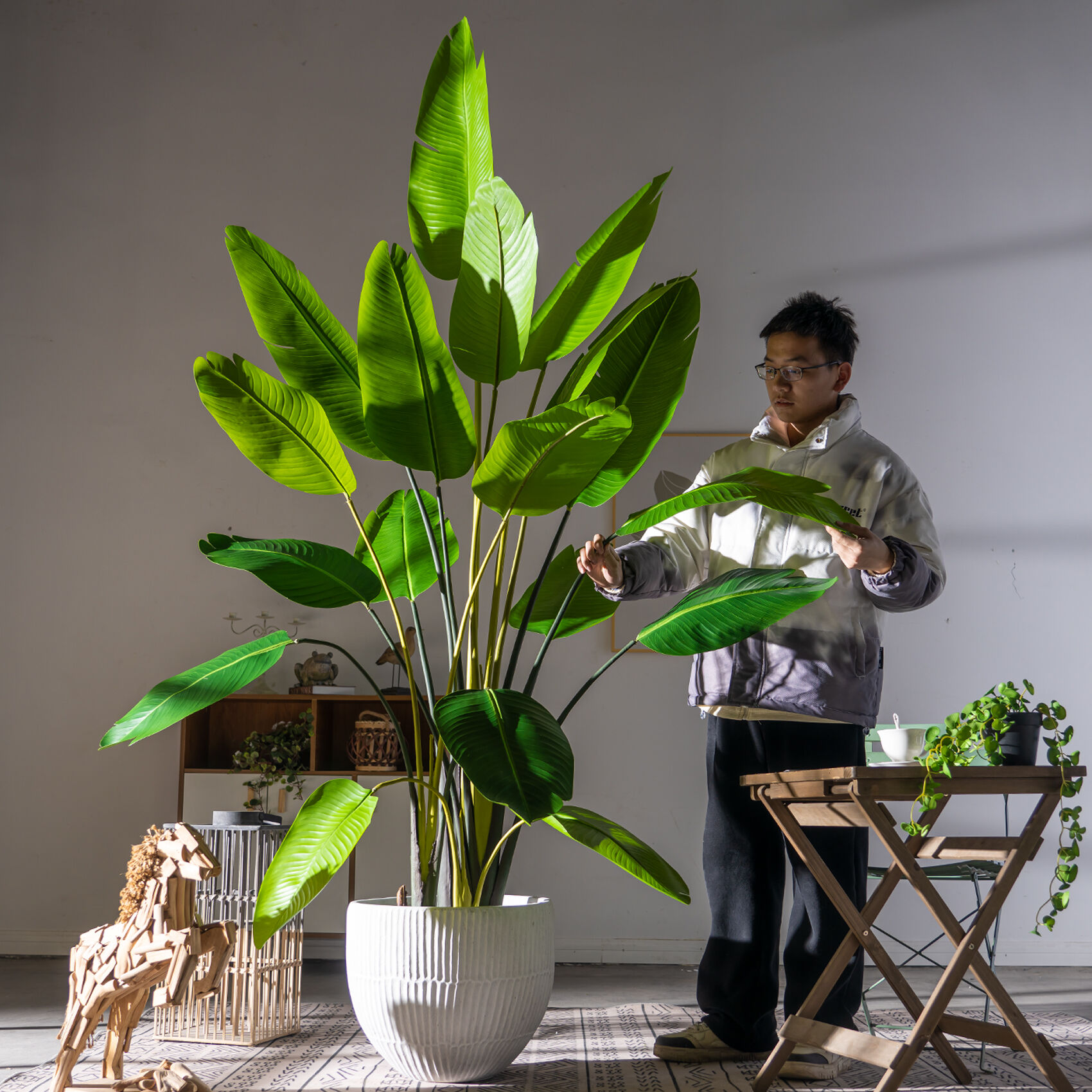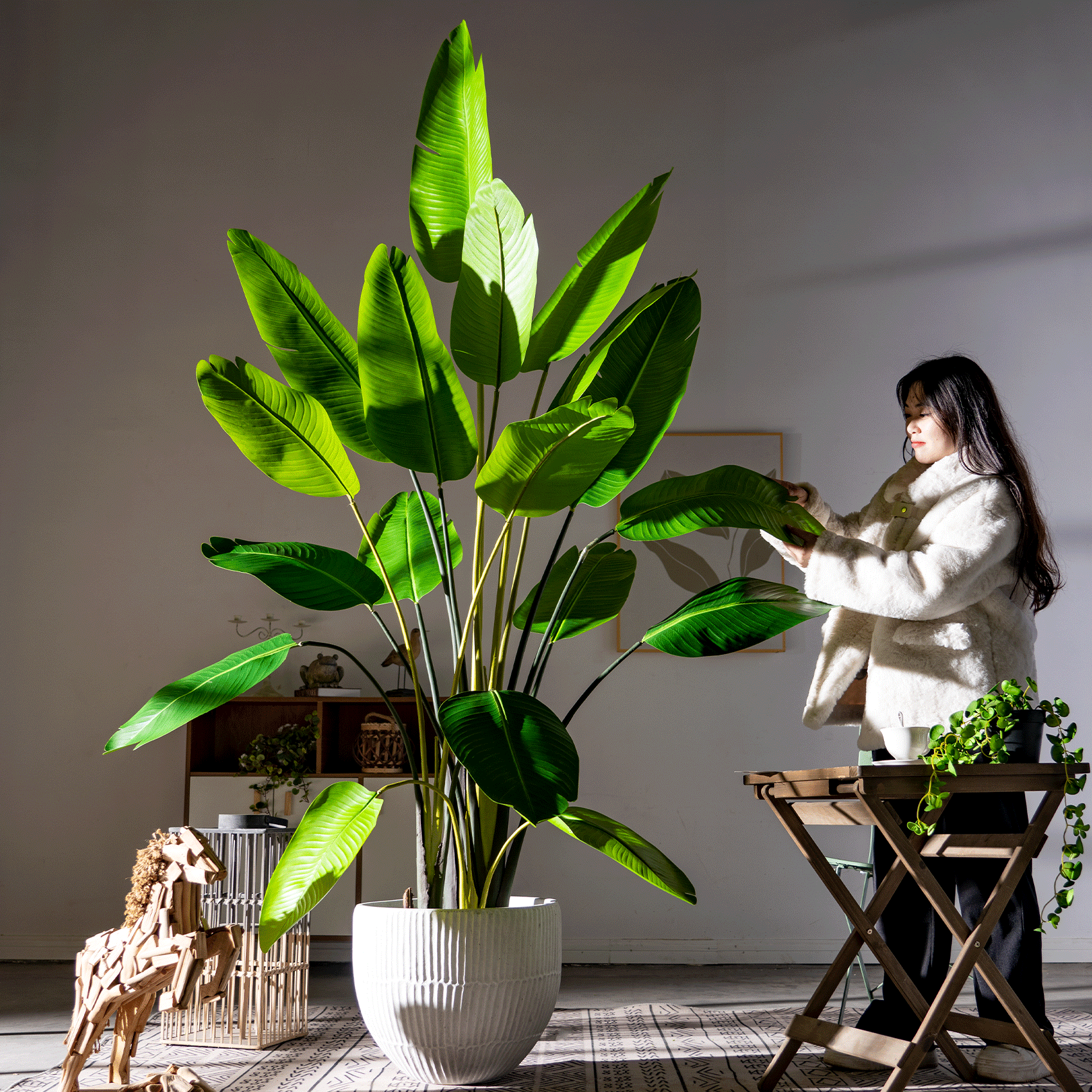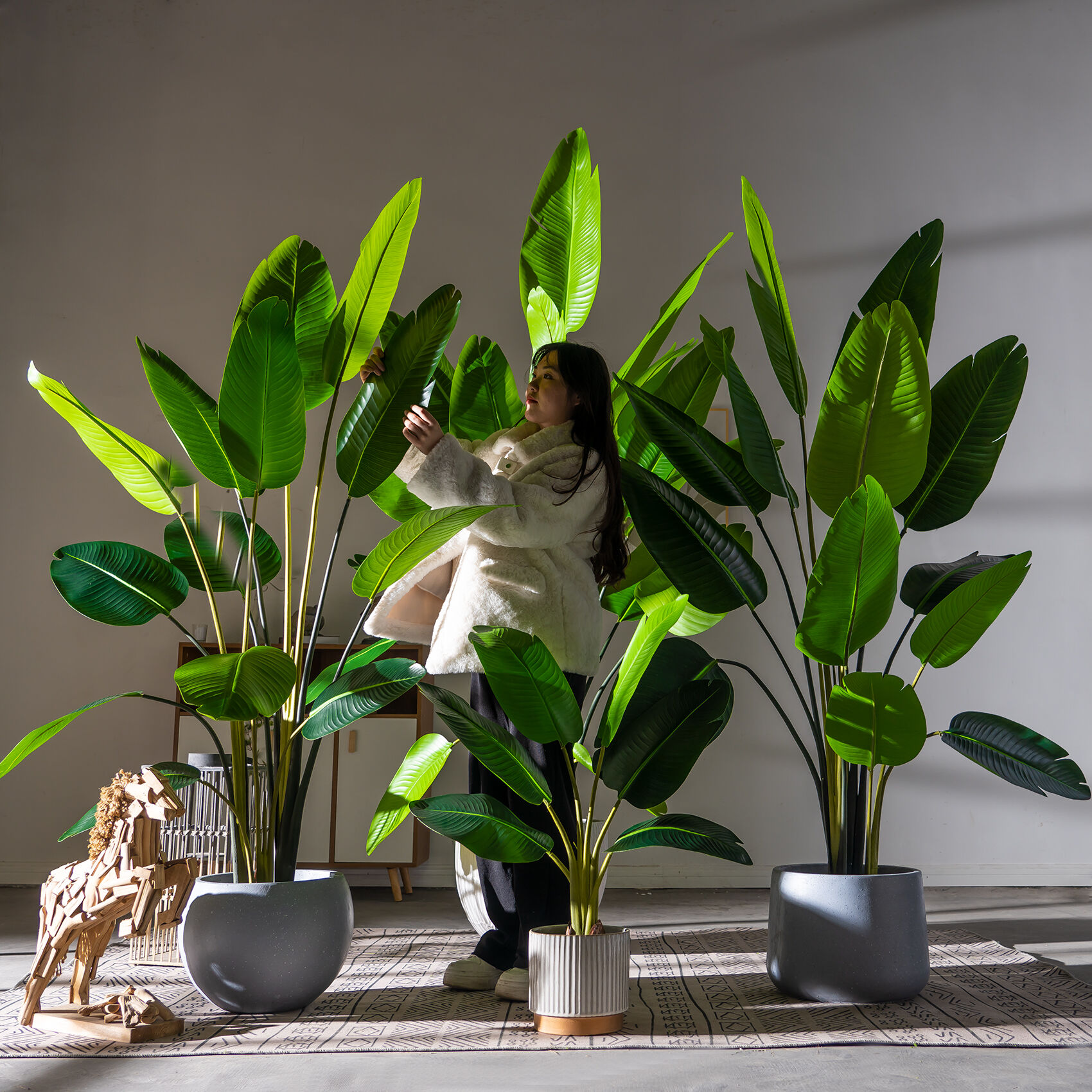 Residential applications include luxury homes, condominiums, and high-end apartment complexes where homeowners desire the aesthetic benefits of tropical plants without the associated maintenance responsibilities. Interior designers frequently specify these pieces for homes with challenging growing conditions, frequent travel schedules, or specific allergy considerations that make living plants impractical.
