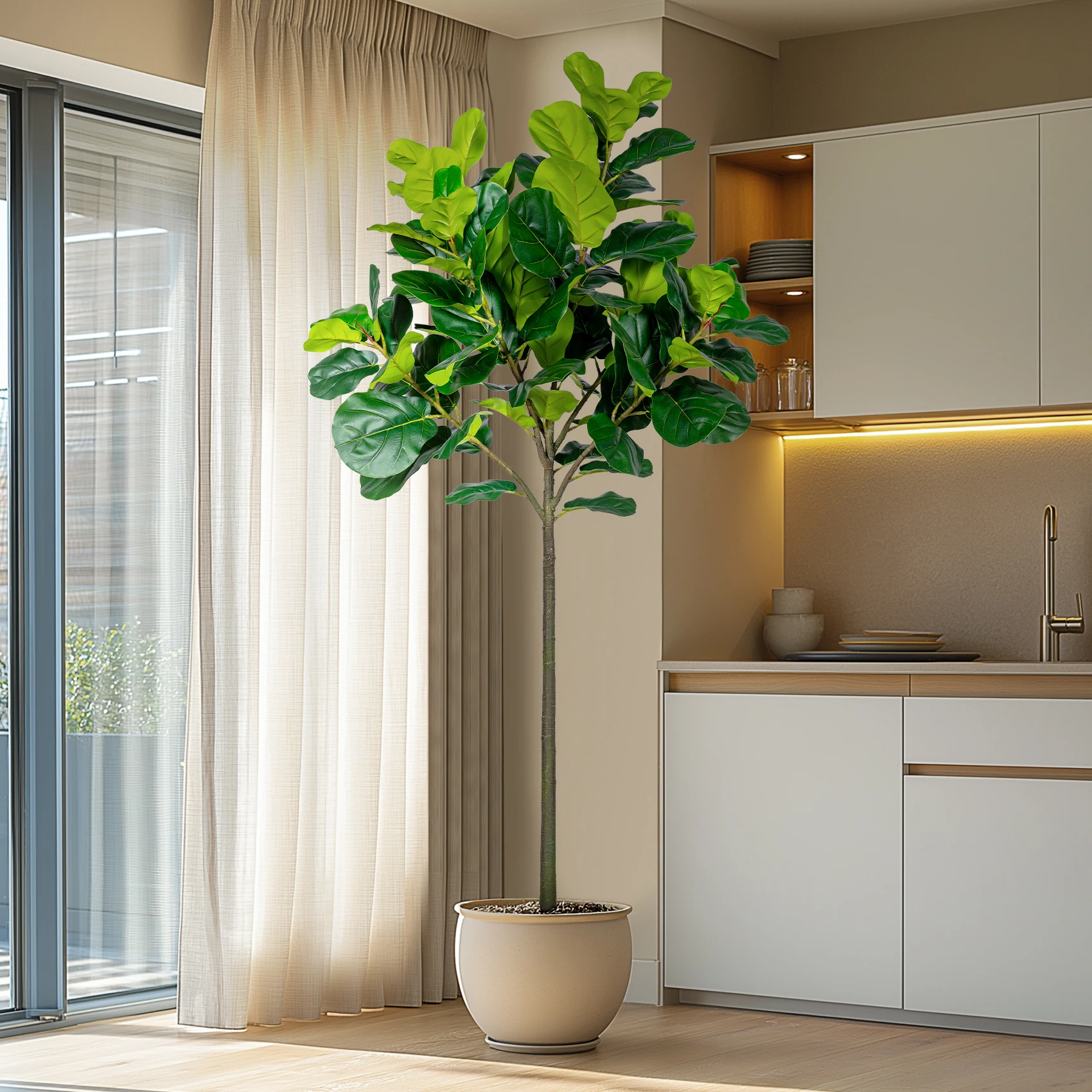 The realistic texture and color variations incorporated into each leaf create an authentic botanical appearance that closely resembles natural ficus varieties. This attention to detail extends to the subtle variations in leaf size, shape, and positioning that contribute to the organic, natural look that distinguishes premium artificial foliage from basic alternatives.