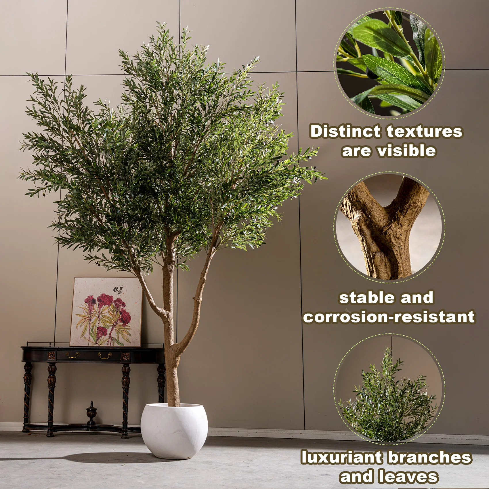 Business owners and end customers alike appreciate the zero-maintenance requirements of this artificial olive tree. There's no need for watering, pruning, fertilizing, or pest control measures that typically accompany living plants. This feature translates to significant cost savings over time while ensuring consistent visual appeal regardless of seasonal changes or environmental conditions. The tree maintains its pristine appearance without the unpredictable variables associated with live plant care.