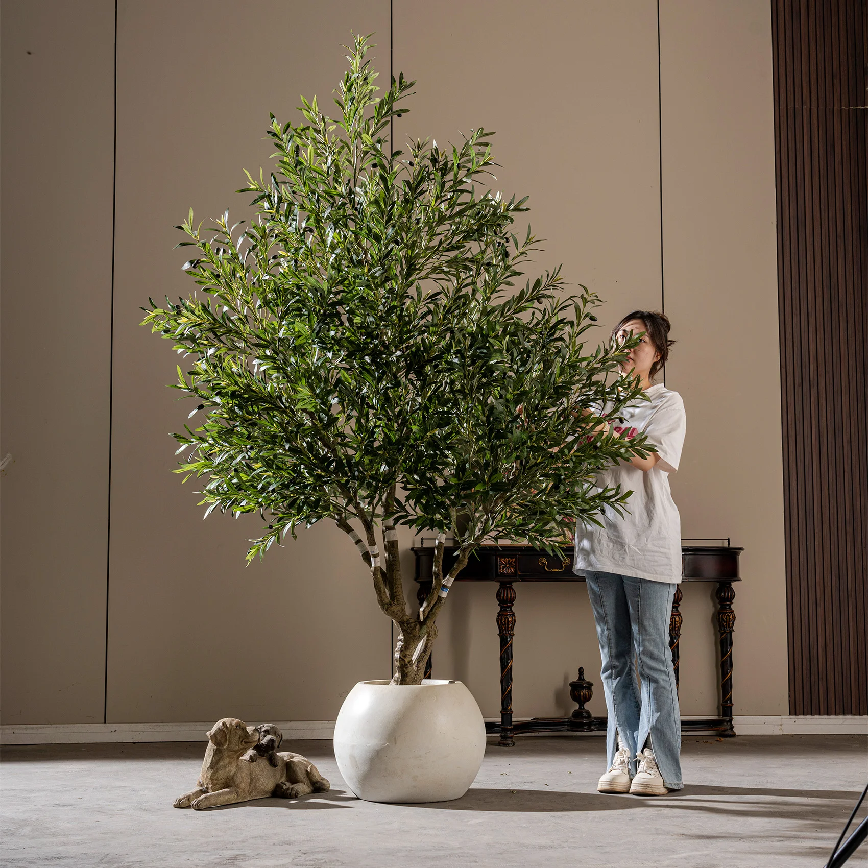 Understanding the diverse needs of commercial clients, comprehensive customization services transform this artificial olive tree into a unique brand asset. Color modifications can be implemented to match specific design schemes or corporate color palettes, while structural adjustments allow for tailored proportions that fit particular spatial requirements. These customization capabilities make it possible for businesses to create distinctive installations that reinforce brand identity while maintaining the natural beauty of olive tree aesthetics.