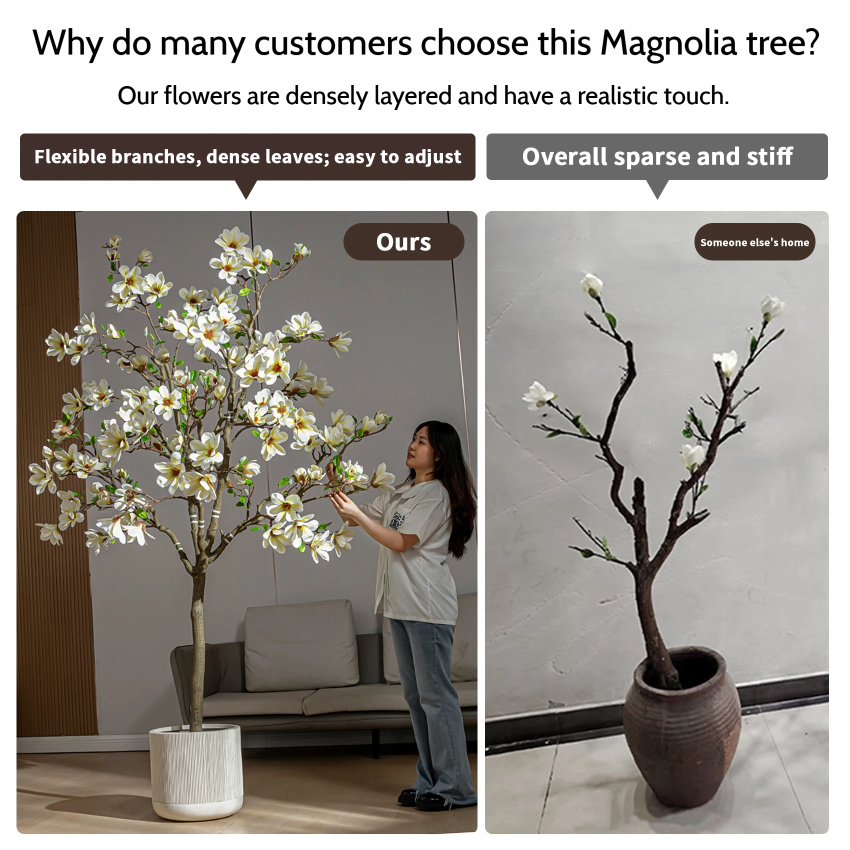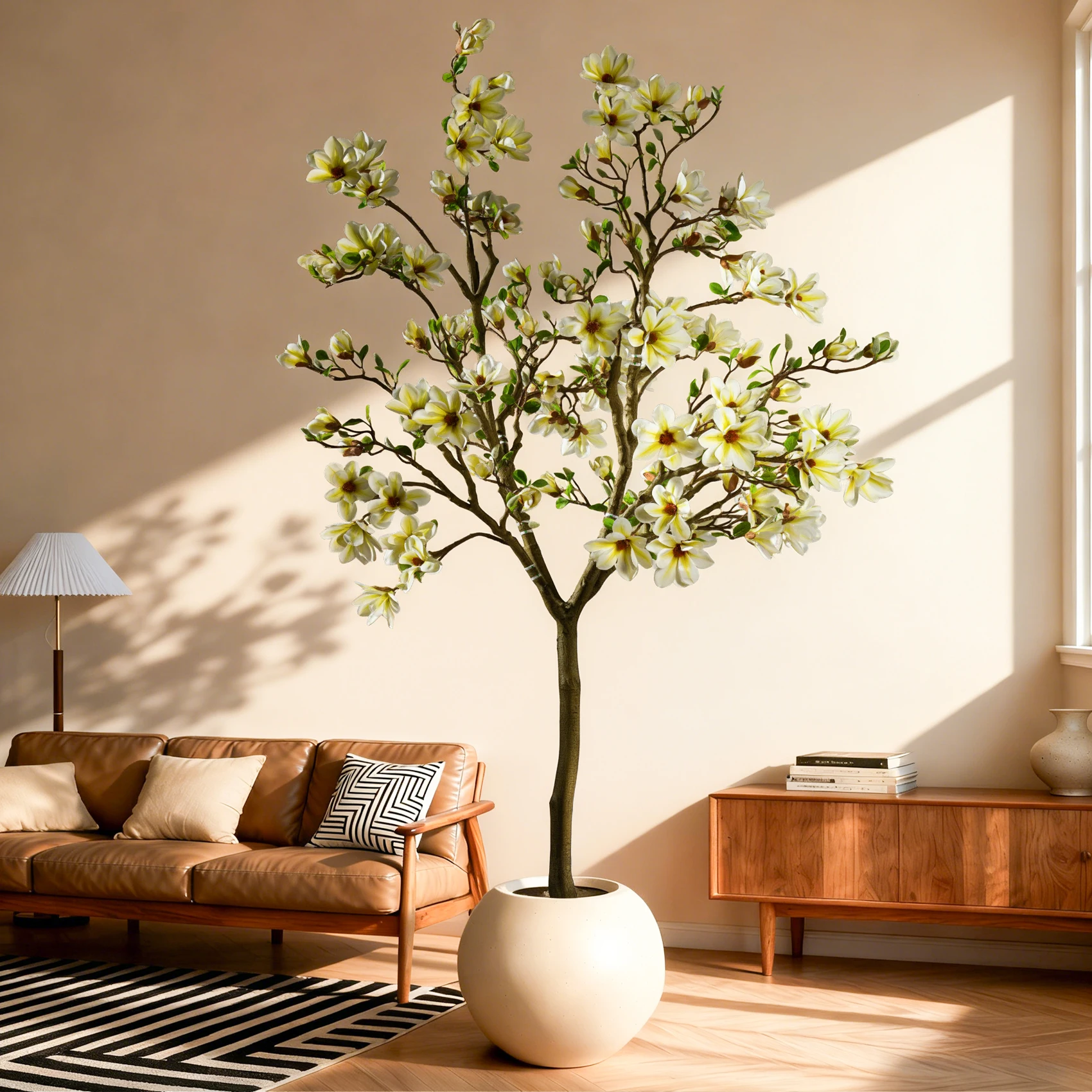 Each artificial magnolia tree features meticulously detailed craftsmanship that replicates the natural beauty of living magnolia specimens. The flowering elements showcase authentic petal textures, natural color gradations, and realistic bloom formations that create convincing visual appeal from both close inspection and distance viewing. Careful attention to botanical accuracy ensures that the artificial trees blend seamlessly with natural landscaping elements or serve as stunning standalone decorative features.