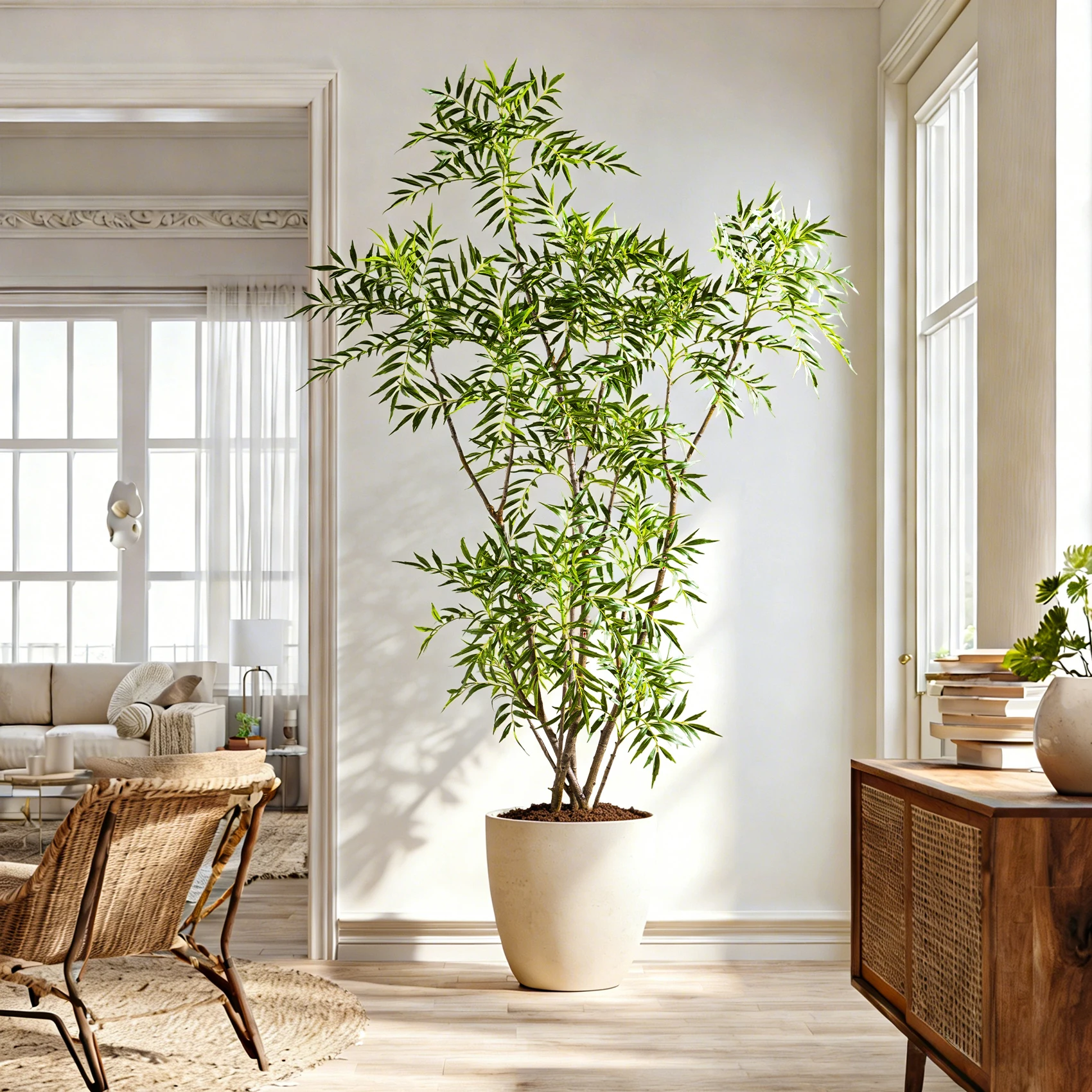 Transform any interior space with the timeless elegance of our Realistic Artificial Bamboo Tree in White Pot, Lifelike Faux Plant for Home and Office Decor, Elegant Modern Greenery. This meticulously crafted artificial plant brings the serene beauty of natural bamboo into contemporary environments without the maintenance requirements of live vegetation. Designed for discerning buyers who appreciate authentic aesthetics combined with practical functionality, this premium faux bamboo tree represents the perfect fusion of botanical realism and modern convenience.